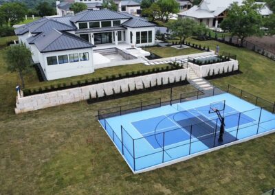 A Longhorn pickleball court completes this family’s backyard recreational space.