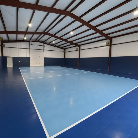 Grand Slam Courts showed how to take a barn and create an indoor space for pickleball and hoops play. This court in Bulverde features SnapSports tile.
